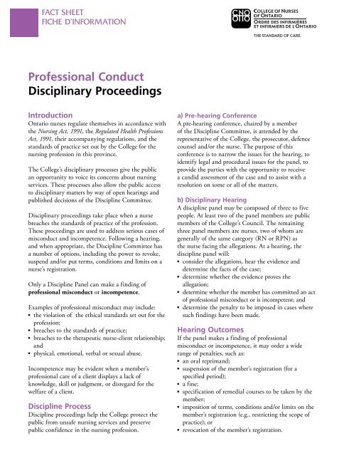 Professional Conduct Disciplinary Proceedings College Of Nurses